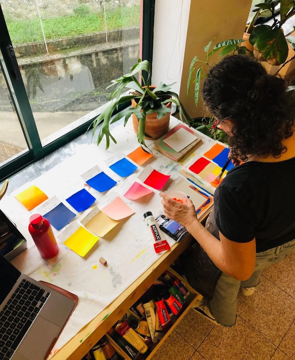 I always write in the morning and have a studio diary to see the evolution of my daily practice, I have a notebook for colors that gives me directions of what colours and brands I’m using or not using.